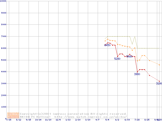 Socket 370 (PGA,FSB 133MHz,L2 64KB)の最安値推移