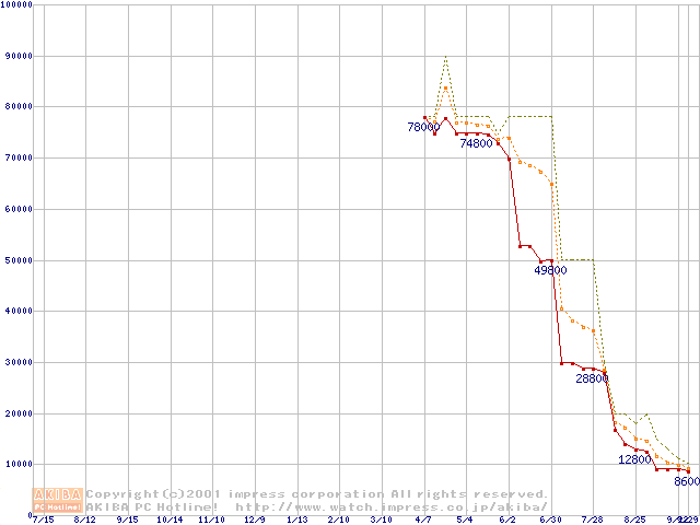 PC2100(DDR266) DDR SDRAM DIMMの最安値推移