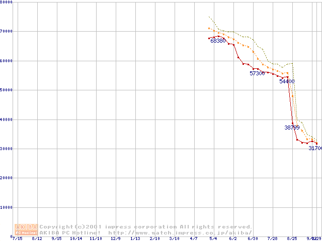 Pentium 4 1.7GHz(423pin)リテールパッケージ(256MB)の価格推移
