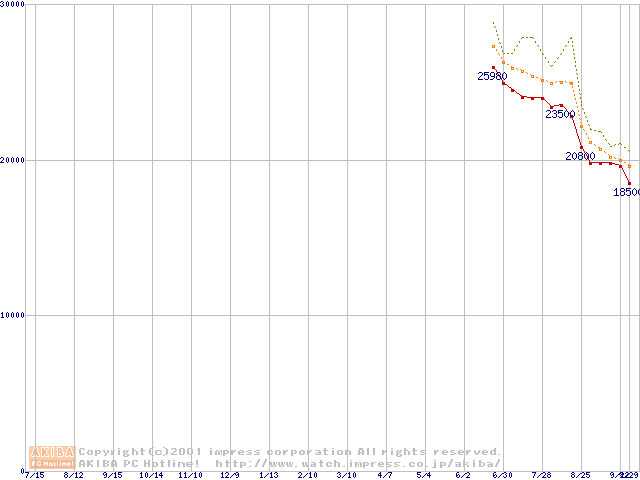 Socket A (Palomino,PGA,FSB 266MHz,L2 256KB)の最安値推移