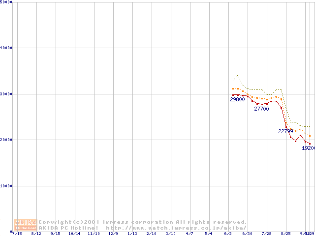 Socket A (Palomino,PGA,FSB 266MHz,L2 256KB)の最安値推移