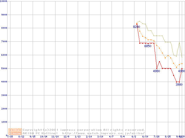 VIA C3 733AMHz リテールパッケージの価格推移