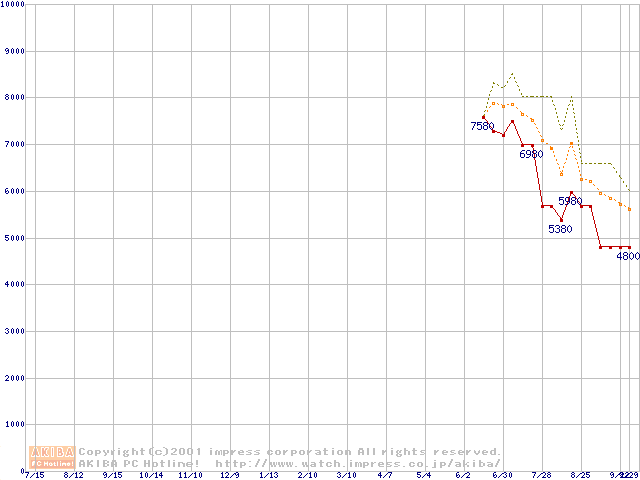 VIA C3 750AMHz リテールパッケージの価格推移