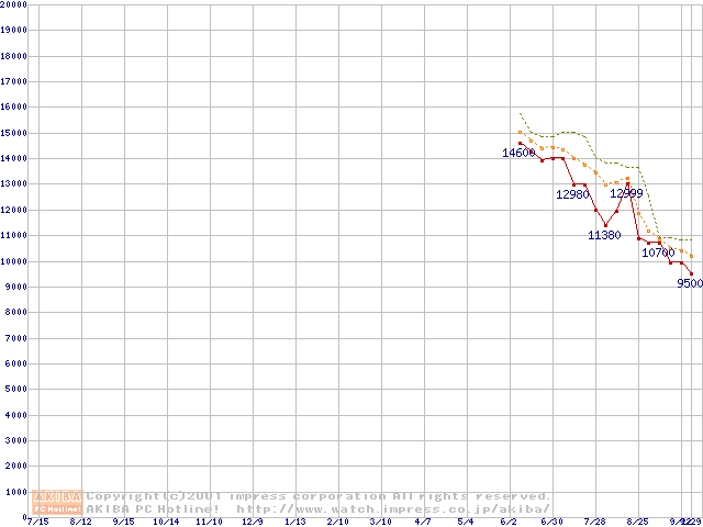 Duron 950MHz リテールパッケージの価格推移