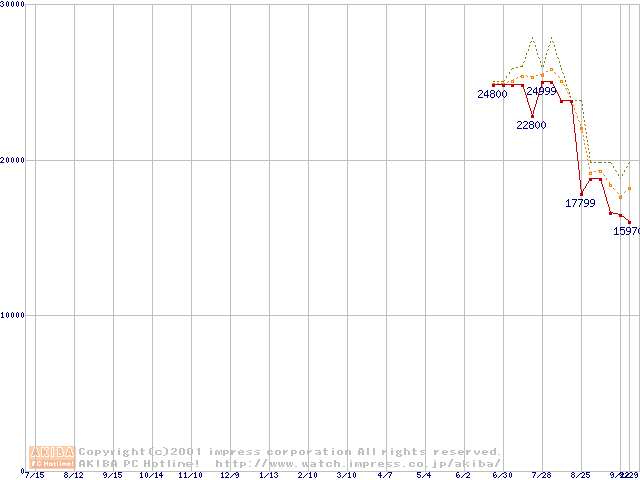 Pentium 4 1.4GHz(423pin)リテールパッケージ(RIMMなし)の価格推移