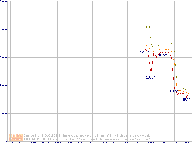 Pentium 4 1.5GHz(423pin)リテールパッケージ(RIMMなし)の価格推移