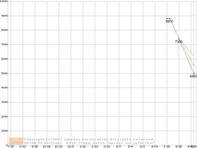 PC2100(DDR266) DDR SDRAM DIMM ECC対応 Registeredタイプの最安値推移