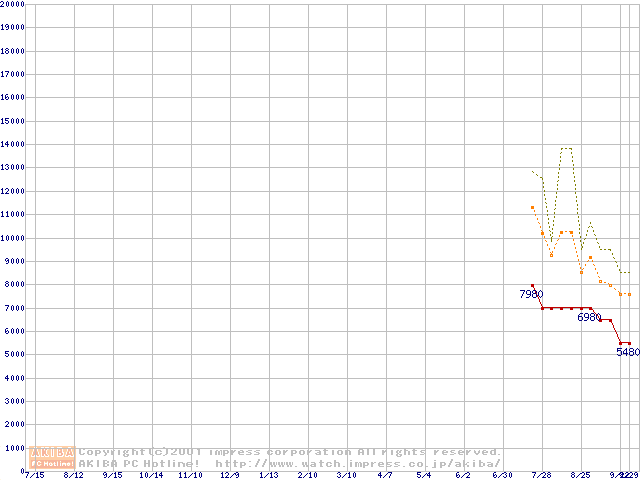 PC100 SDRAM DIMM CasLatency=2 ECC対応 Registeredタイプの最安値推移