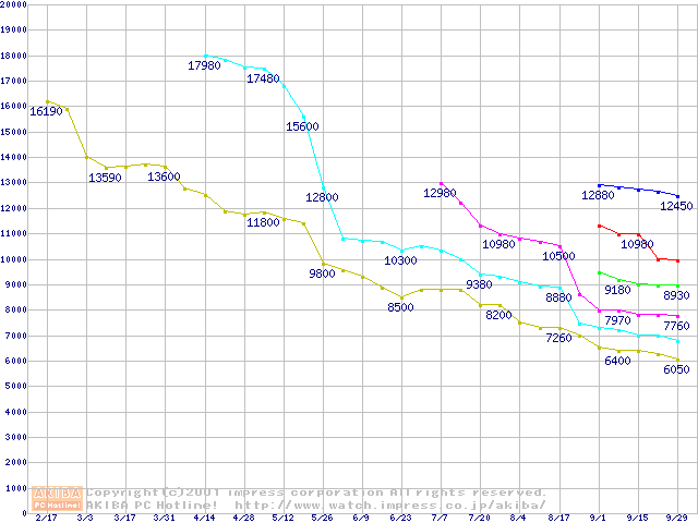 | [↓次グラフ]: | Socket 370 (FC-PGA,FSB 66MHz,L2 128KB)の最安値推移 |