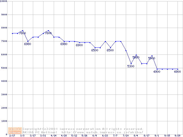 | [↓次グラフ]: | Socket A (Palomino,PGA,FSB 266MHz,L2 256KB)の最安値推移 |