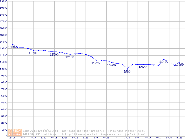 | [↑前グラフ]: | Deskstar 60GXP (7200rpm UltraATA/100 2MB)の最安値推移 |