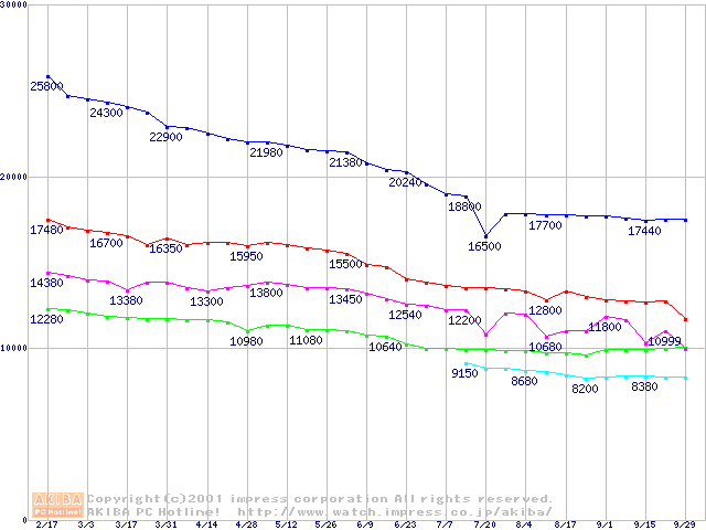 | DiamondMax Plus 60 (7200rpm,UltraATA/100)の最安値推移(テスト公開中) |