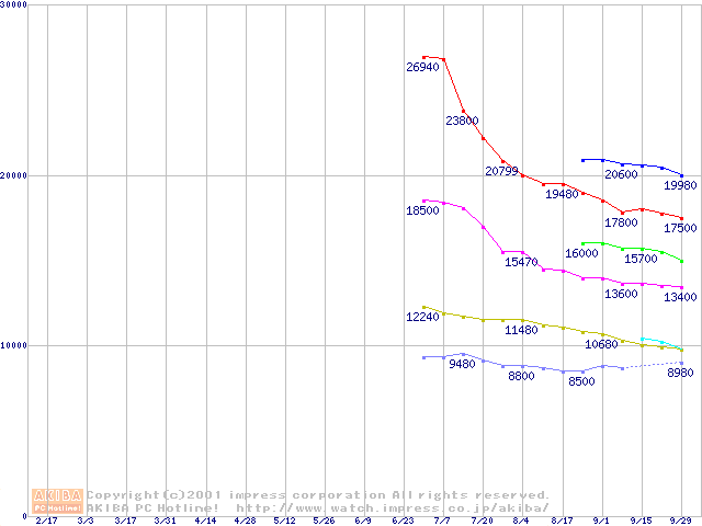 | [↑前グラフ]: | DiamondMax Plus 60 (7200rpm,UltraATA/100)の最安値推移 |