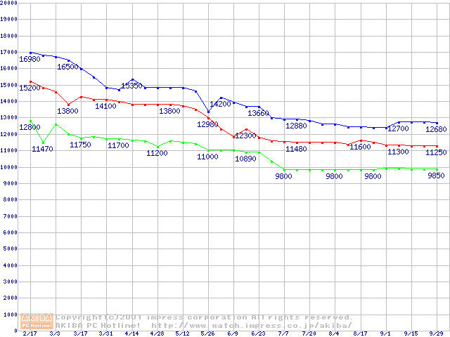 | [↑前グラフ]: | WD Caviar (7200rpm UltraATA/100)の最安値推移 |