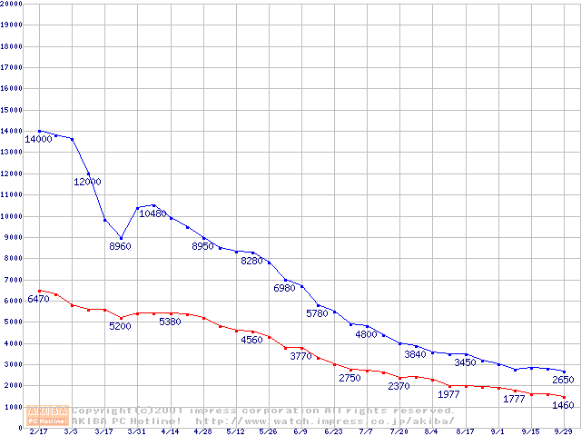 | [↓次グラフ]: | PC166 SDRAM DIMMの最安値推移 |