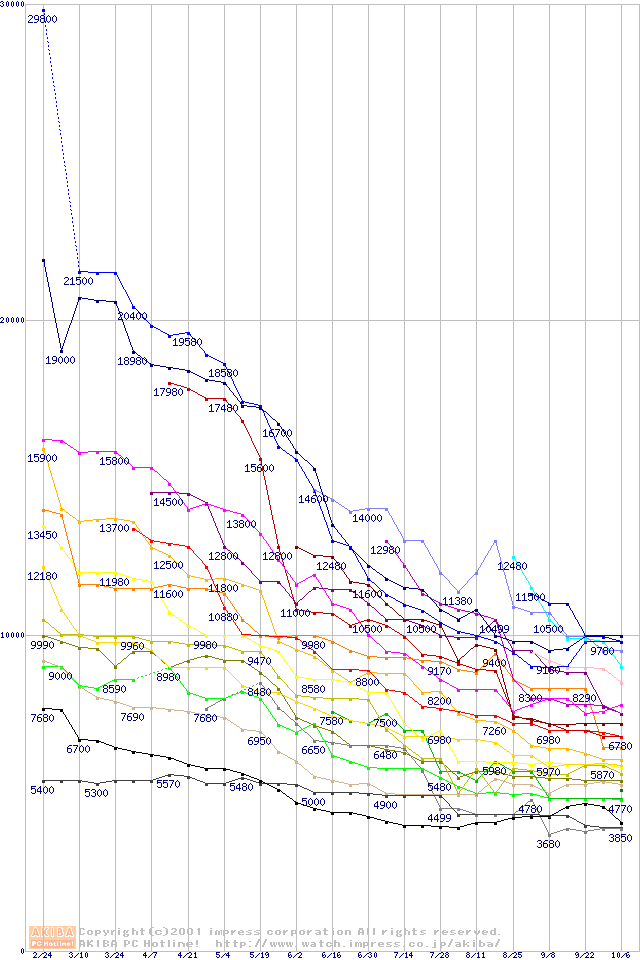 CPU主要製品の最安値推移