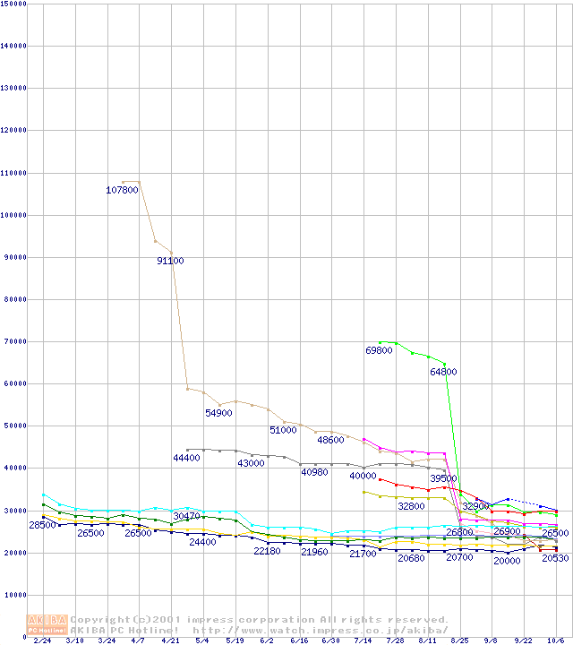 CPU主要製品(最安値2万円~3万円未満)の最安値推移