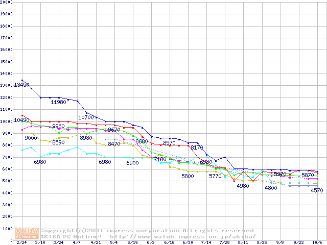 [↑前グラフ]: | Socket 370・FSB 100MHzの最安値推移 |