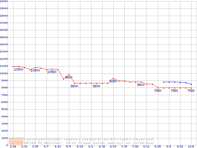 | [↑前グラフ]: | HDD 80GB以上(5400rpmクラス)の最安値推移 |