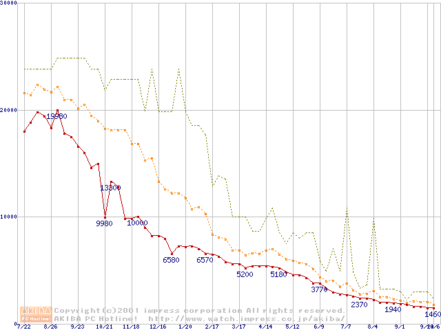 メモリ主要製品の最安値推移
