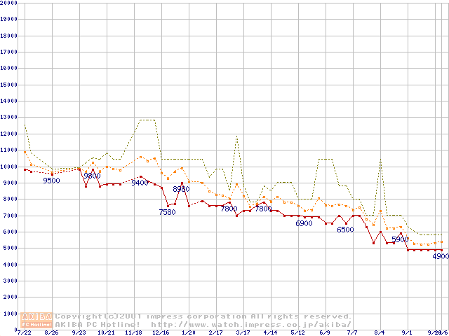 Socket 370 (PPGA,FSB 66MHz,L2 128KB)の最安値推移