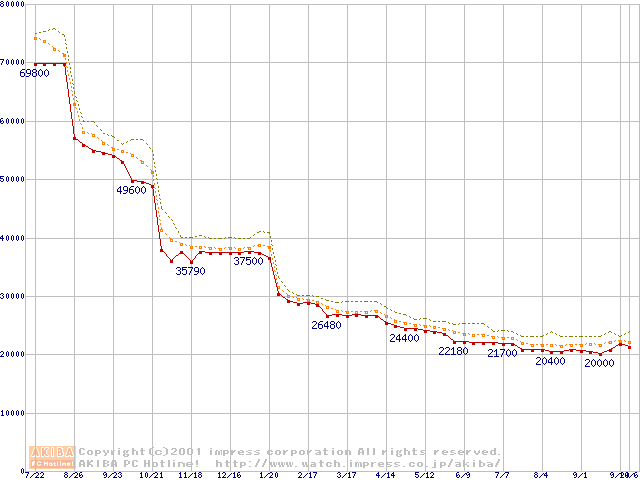 Pentium III 933MHz FC-PGA リテールパッケージの価格推移