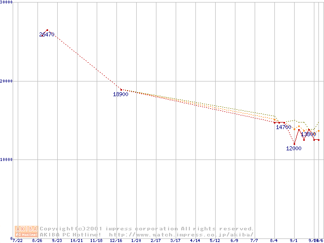 Slot 1 (SECC2,FSB 100MHz,L2 256KB)の最安値推移