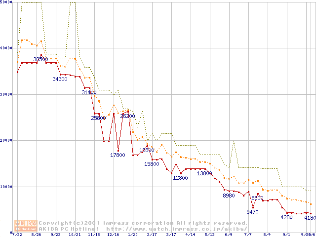 メモリ主要製品の最安値推移