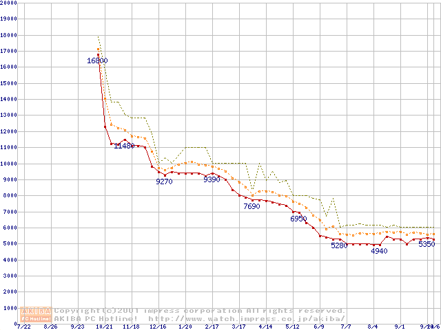 Socket A (PGA,FSB 200MHz,L2 64KB)の最安値推移