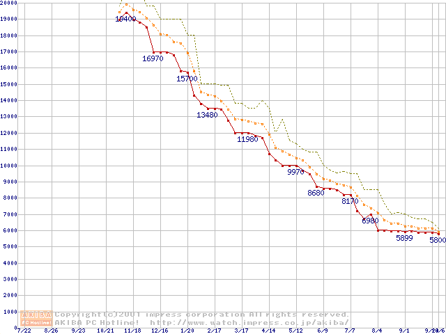 Celeron 766MHz FC-PGA リテールパッケージの価格推移