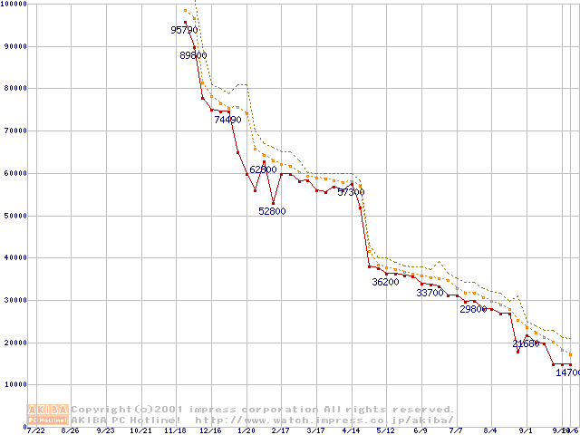 Pentium 4 1.4GHz(423pin)リテールパッケージ(128MB)の価格推移
