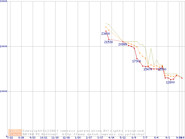 Athlon 1GHz(FSB266) (Thunderbird) リテールパッケージの価格推移
