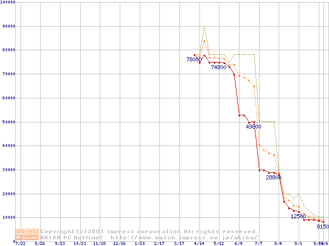 PC2100(DDR266) DDR SDRAM DIMMの最安値推移
