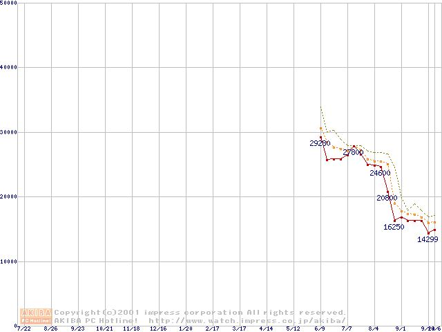 Athlon 1.4GHz(FSB266) (Thunderbird) リテールパッケージの価格推移