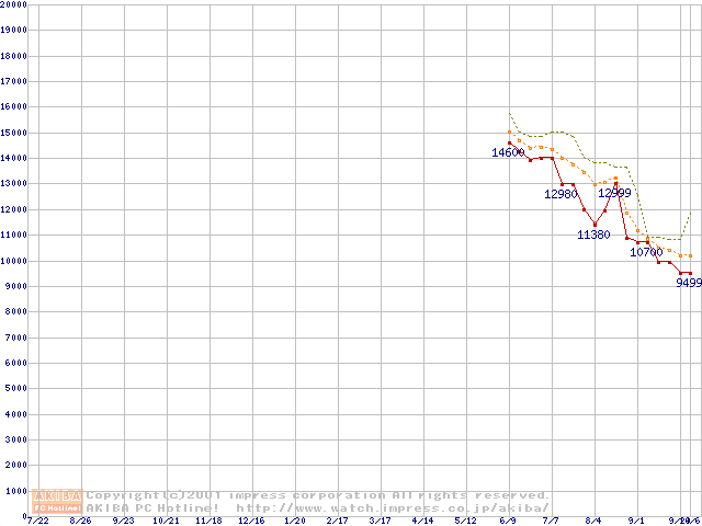 Duron 950MHz リテールパッケージの価格推移