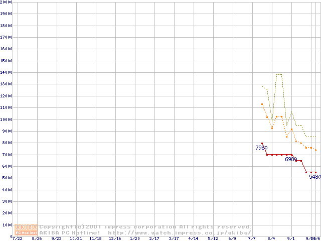 PC100 SDRAM DIMM CasLatency=2 ECC対応 Registeredタイプの最安値推移