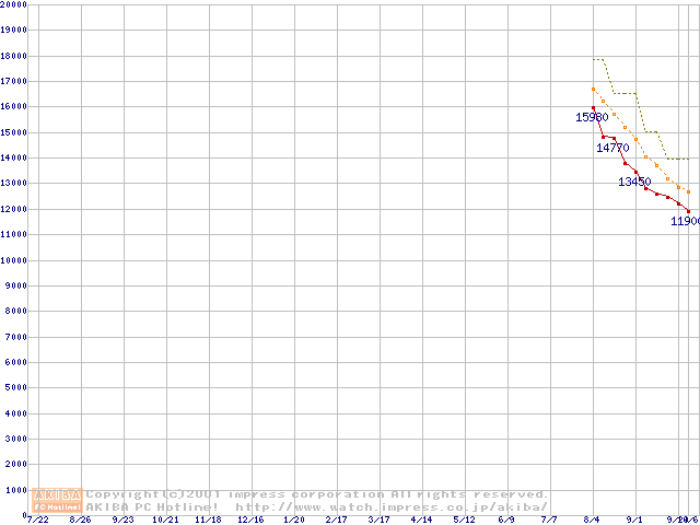 HDD主要製品(最安値1万円~1万5千円未満)の最安値推移