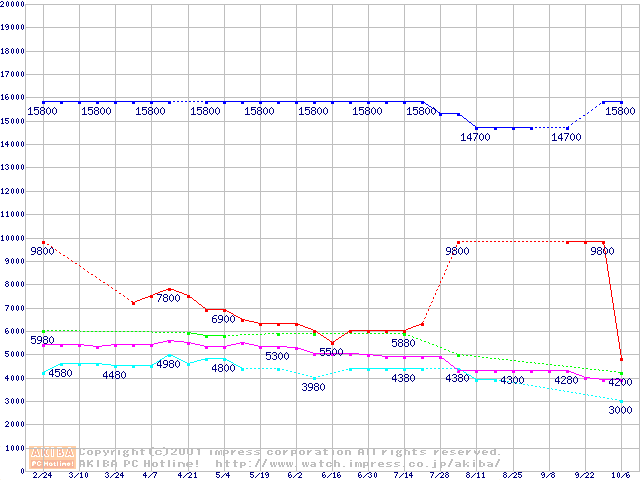 | [↑前グラフ]: | Socket A (Mobile,PGA,FSB 200MHz,L2 64KB,1.4V)の最安値推移 |