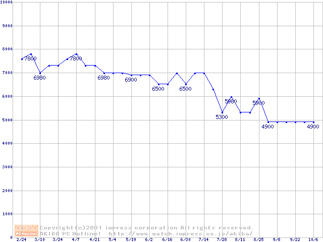 | [↓次グラフ]: | Socket A (Palomino,PGA,FSB 266MHz,L2 256KB)の最安値推移 |