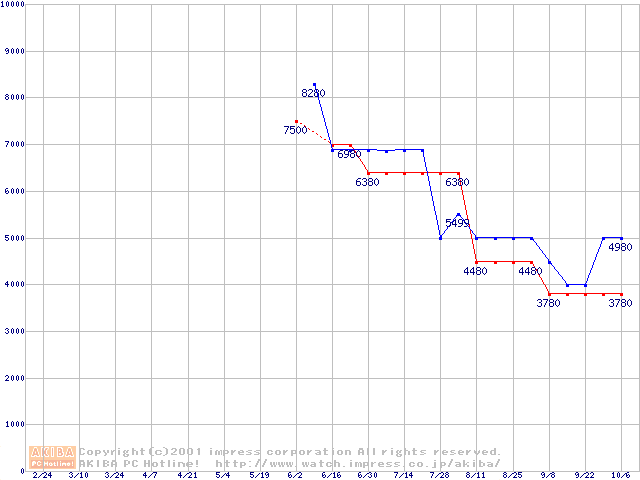| [↓次グラフ]: | DiamondMax Plus D740X (7200rpm,UltraATA/133,40GB/Platter)の最安値推移 |