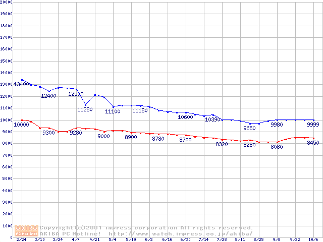 | [↑前グラフ]: | MPG3xxxAH-E (7200rpm UltraATA/100)の最安値推移 |