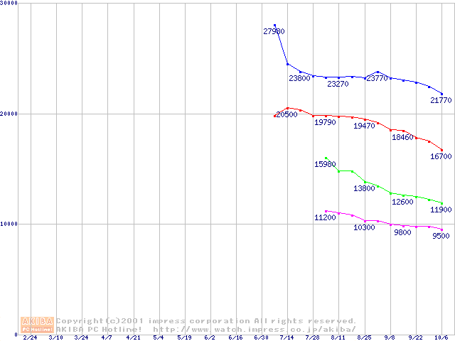 | [↑前グラフ]: | Fireball Plus AS (7200rpm UltraATA/100 2MB)の最安値推移 |