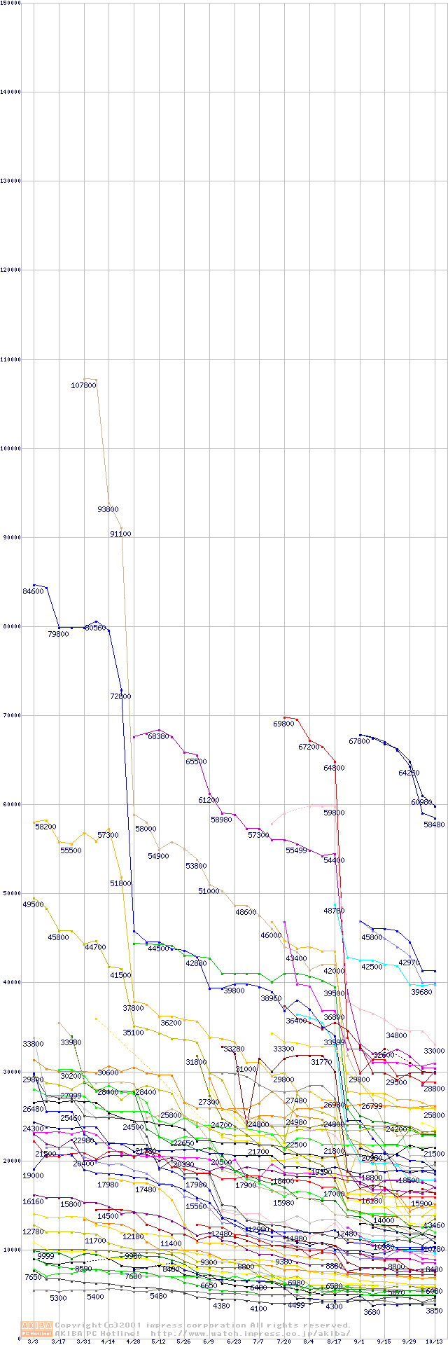 CPU主要製品の最安値推移