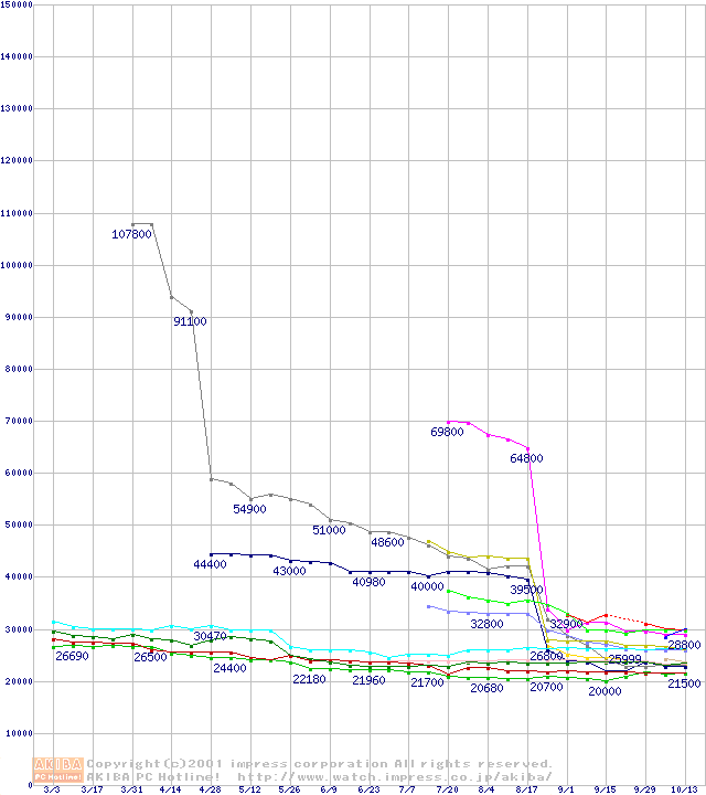 CPU主要製品(最安値3万円以上)の最安値推移