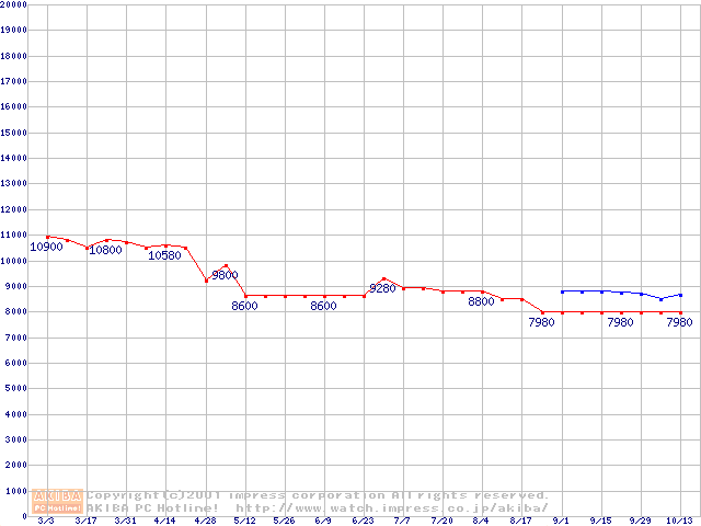 | [↑前グラフ]: | HDD 80GB以上(5400rpmクラス)の最安値推移 |