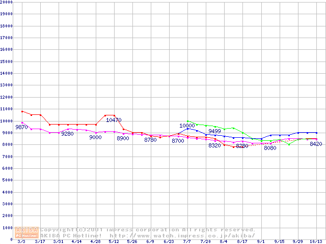 | [↑前グラフ]: | HDD主要製品の最安値推移 |