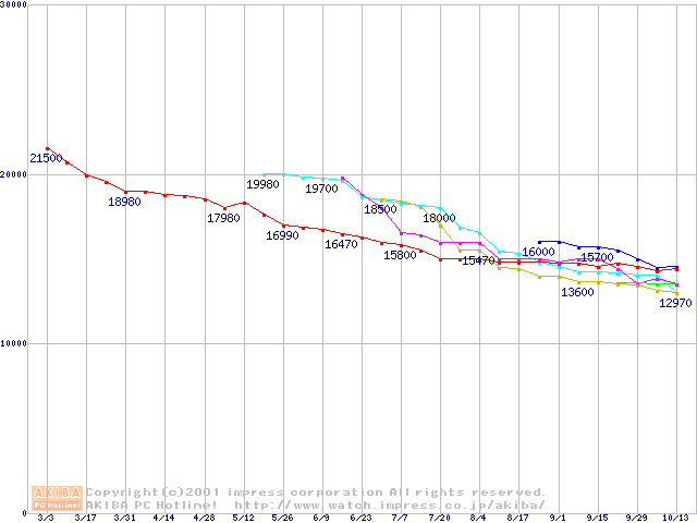| [↓次グラフ]: | HDD 80GB以上(5400rpmクラス)の最安値推移 |
