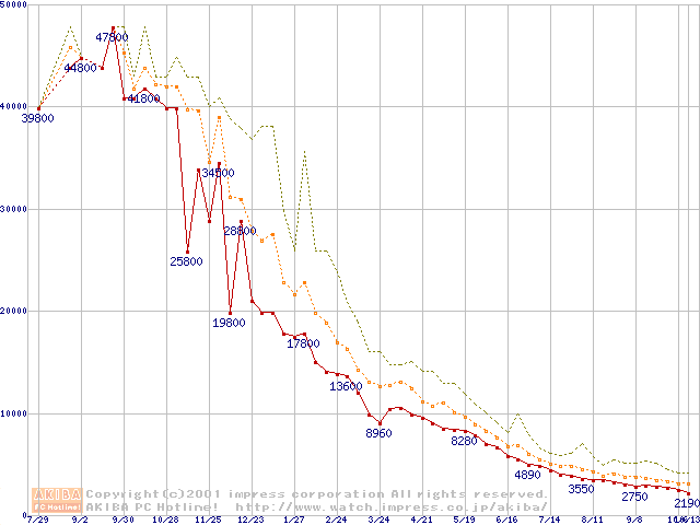 メモリ主要製品の最安値推移