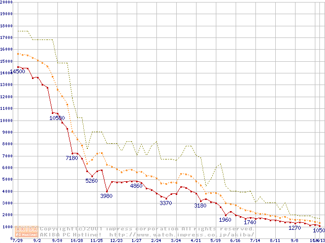 PC133 SDRAM DIMM CasLatency=3の最安値推移