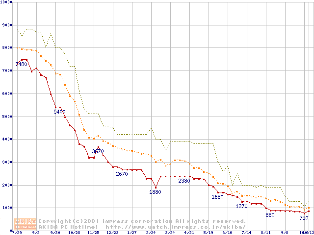 メモリ主要製品の最安値推移